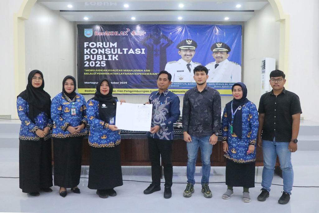 MARTAPURA – Badan Kepegawaian dan Pengembangan Sumber Daya Manusia (BKPSDM) Kabupaten Banjar menggelar Forum Konsultasi Publik (FKP) di aula BKPSDM, Martapura, Selasa (28/10/2025).