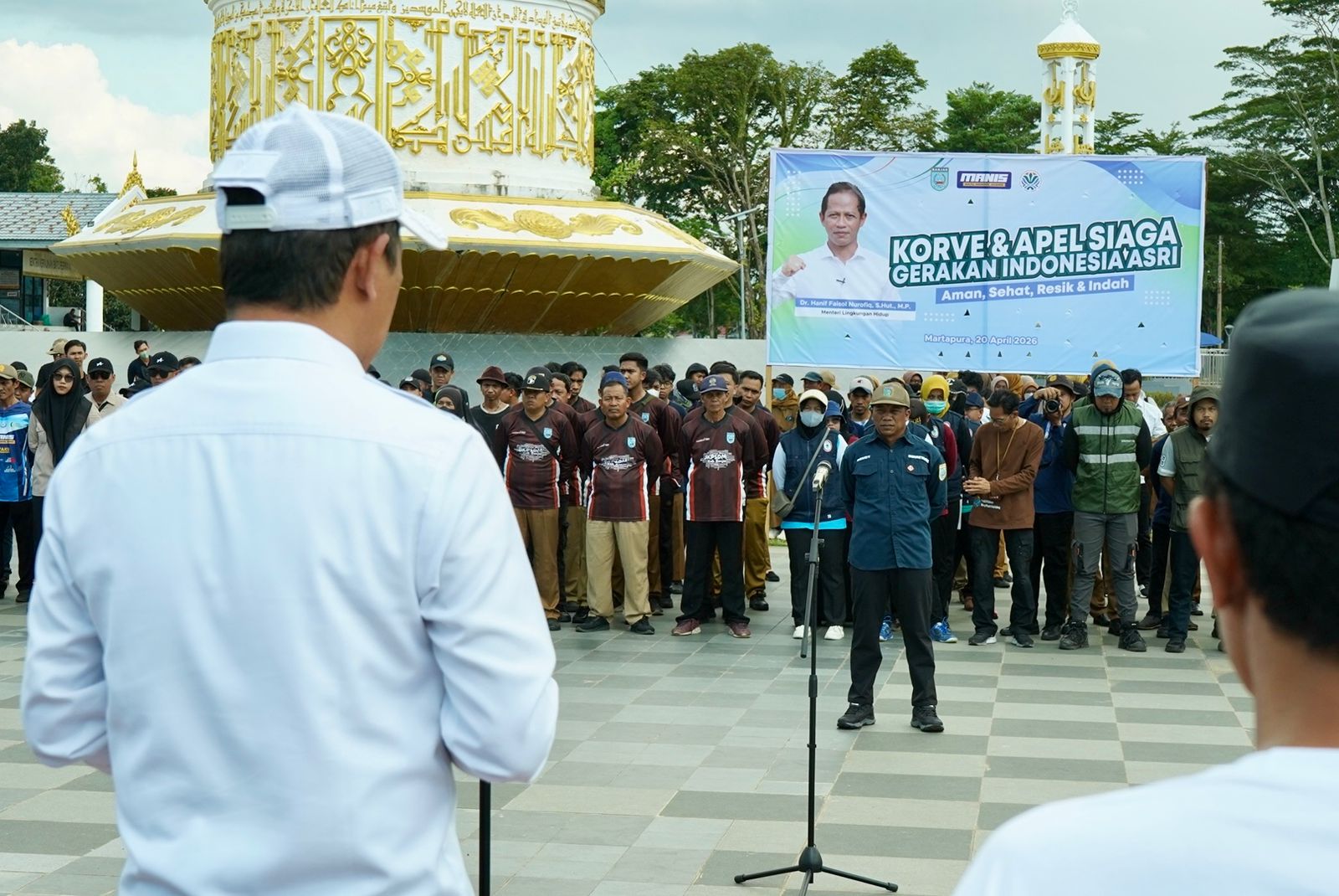 MARTAPURA – Apel Siaga dan kegiatan korve (kerja bakti) dalam rangka Gerakan Indonesia Asri serta kunjungan kerja Hanif Faisol Nurofiq dilaksanakan di Taman Cahaya Bumi Selamat dan Pasar Batuah, Senin (20/4/2026) siang.