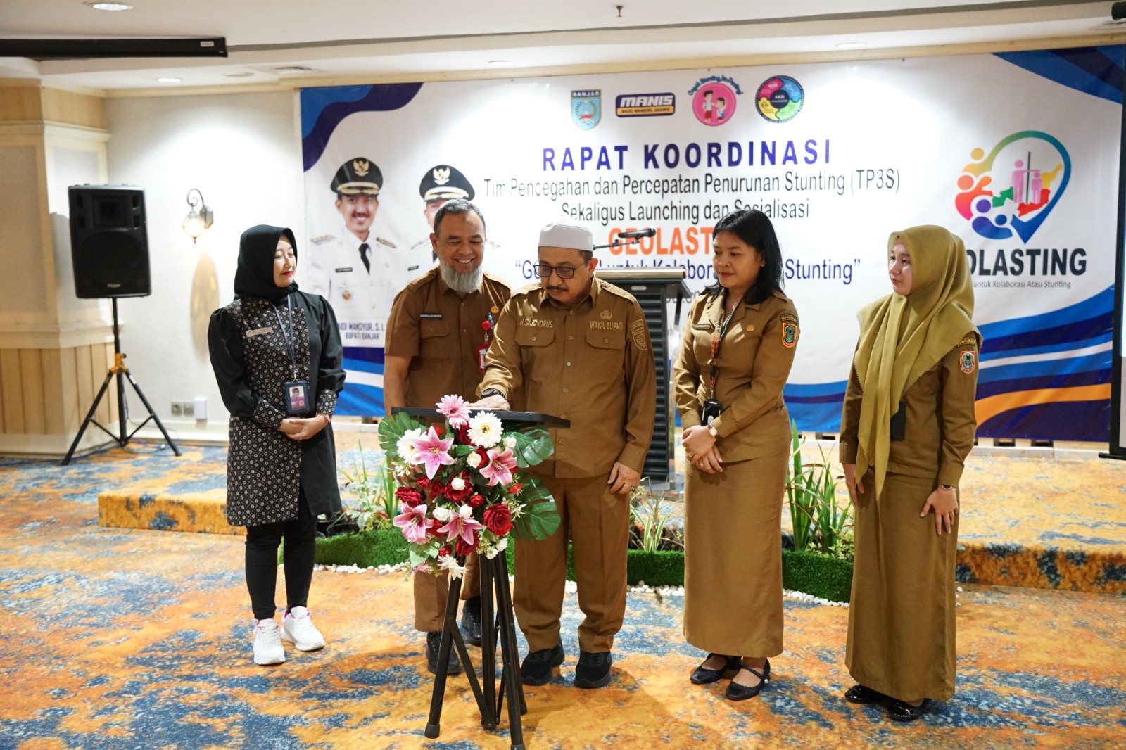 Dalam kesempatan itu juga dilakukan penandatanganan Komitmen Bersama kolaborasi lintas sektor melalui strategi GEOLASTING. Penandatanganan dilakukan Wakil Bupati Banjar, Forkopimda, perwakilan BKKBN Provinsi Kalsel, akademisi Poltekkes Banjarmasin, Baznas Kabupaten Banjar, serta para camat.