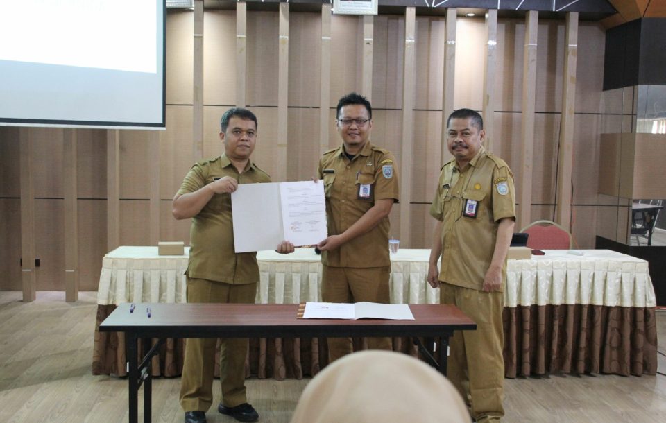 Penandatanganan dilakukan Kabid Penelitian dan Pengembangan Inovasi (PPI) Bappedalitbang Banjar, Nuri Ansari, dan Kabid Penyelenggaraan Informasi dan Komunikasi Publik DKISP Banjar, Nor Syawli Syahri, disaksikan Sekretaris Bappedalitbang, Hanafi.