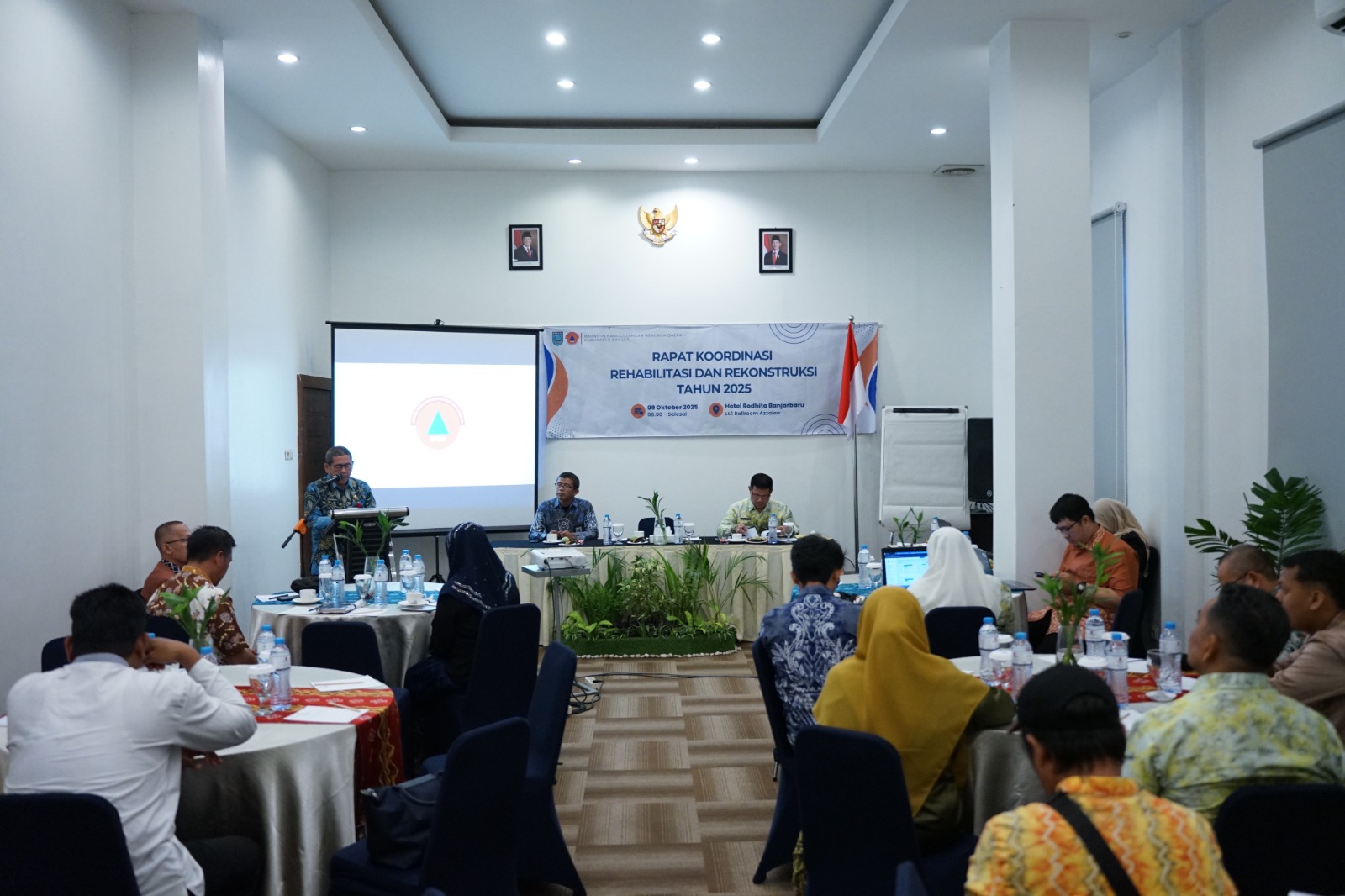 BANJARBARU – Badan Penanggulangan Bencana Daerah (BPBD) Kabupaten Banjar menggelar Rapat Koordinasi (Rakor) Rehabilitasi dan Rekonstruksi Tahun 2025, di Ballroom Azzalea, Hotel Roditha Banjarbaru, Rabu (9/10/2025) pagi.