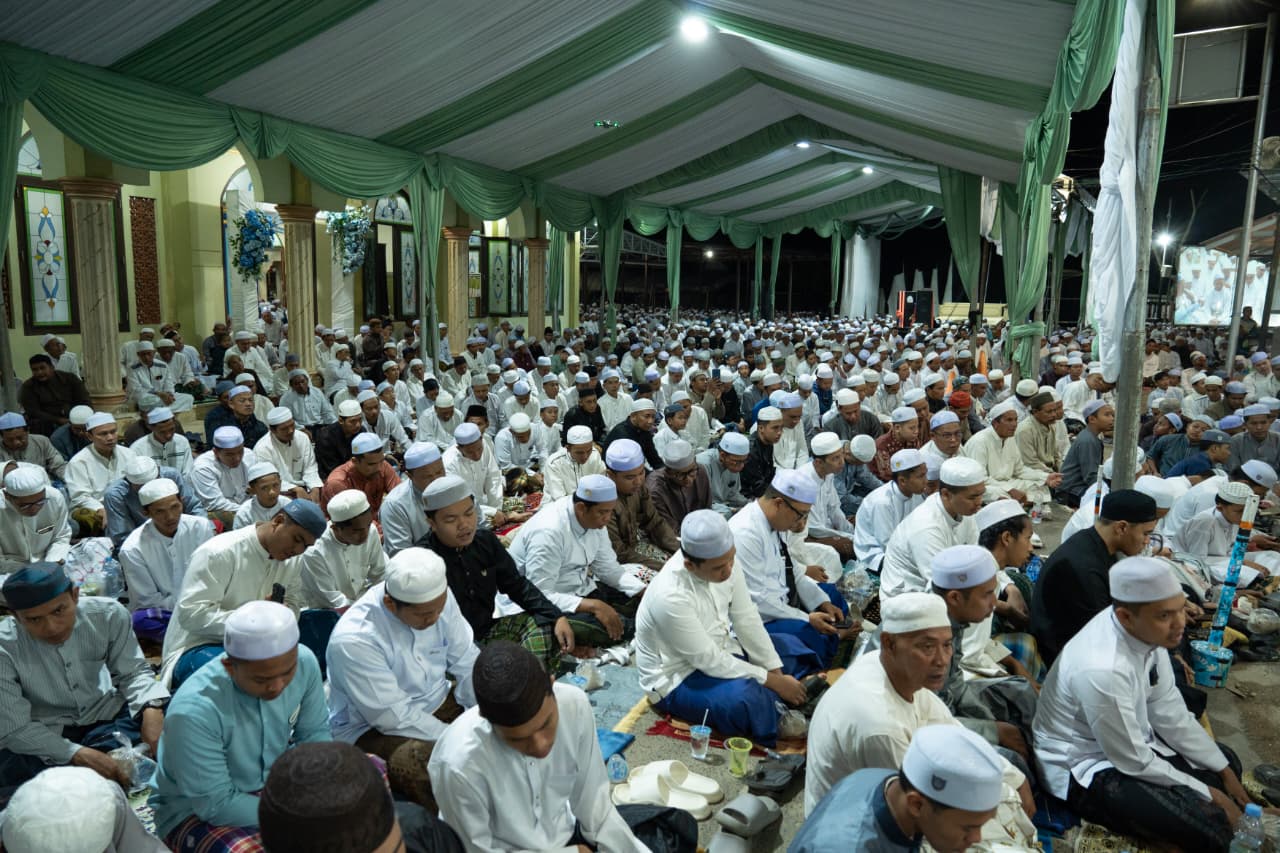 Rangkaian kegiatan di malam pertama diisi dengan salat Isya berjamaah, pembacaan Surah Yasin, dilanjutkan pembacaan Maulid Habsyi oleh Grup Maulid Ar Raudhah dari Sekumpul Martapura. Suasana religius semakin terasa saat jemaah bersama-sama melantunkan tahlil yang kemudian ditutup dengan doa.