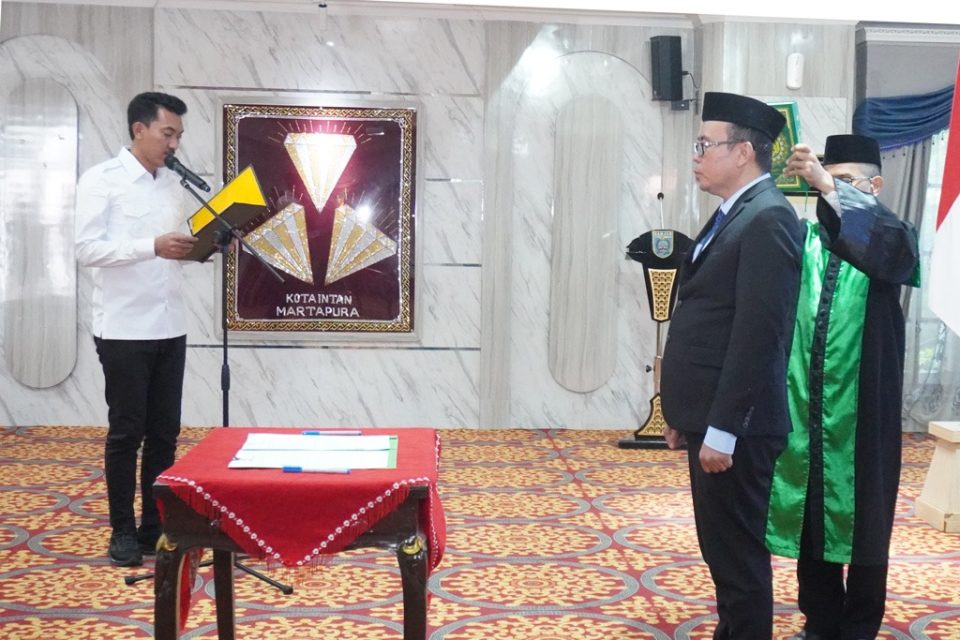 MARTAPURA,- Bupati Banjar H Saidi Mansyur melantik dan mengambil sumpah jabatan Direktur Utama (Dirut) PT Baramarta (Perseroda) Saidan Pahmi, di Mahligai Sultan Adam lantai 2 Martapura, Rabu (30/4/2025) siang.