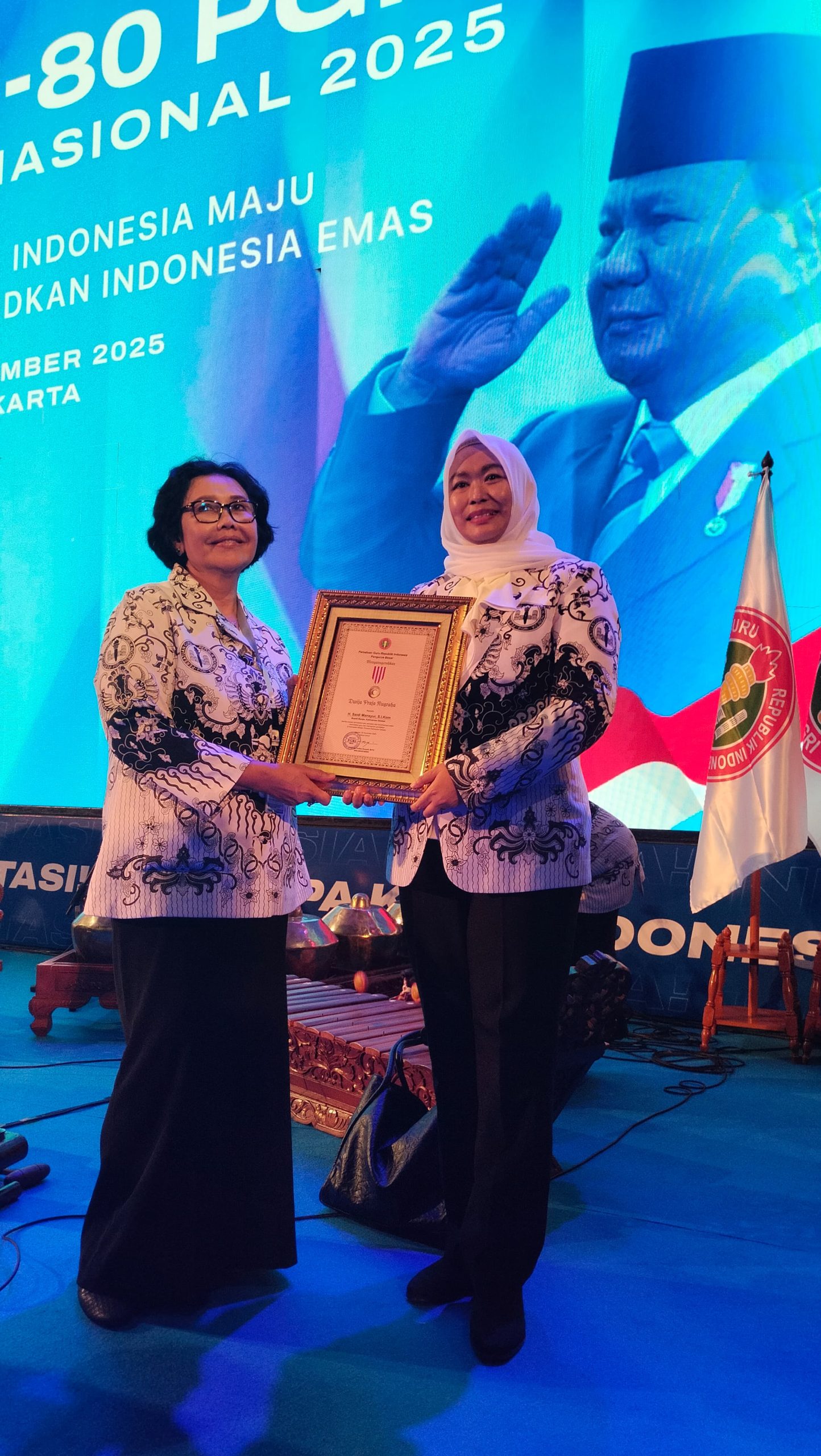 JAKARTA – Bupati Banjar H Saidi Mansyur menjadi salah satu kepala daerah meraih penghargaan Dwija Praja Nugraha, pada Puncak Peringatan HUT ke 80 Persatuan Guru Republik Indonesia (PGRI), yang berlangsung di Britama Arena Kelapa Gading, Jakarta, Sabtu (29/11/2025).