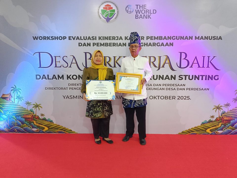 Penghargaan tersebut diserahkan langsung oleh Menteri Desa dan Pembangunan Daerah Tertinggal RI, H Yanri Susanto, dalam acara Workshop Evaluasi Kinerja Kapasitas Pembangunan Manusia dan Pemberian Penghargaan Desa Berkinerja Baik, yang turut didukung oleh The World Bank, di Jakarta, Rabu (8/10/2025).