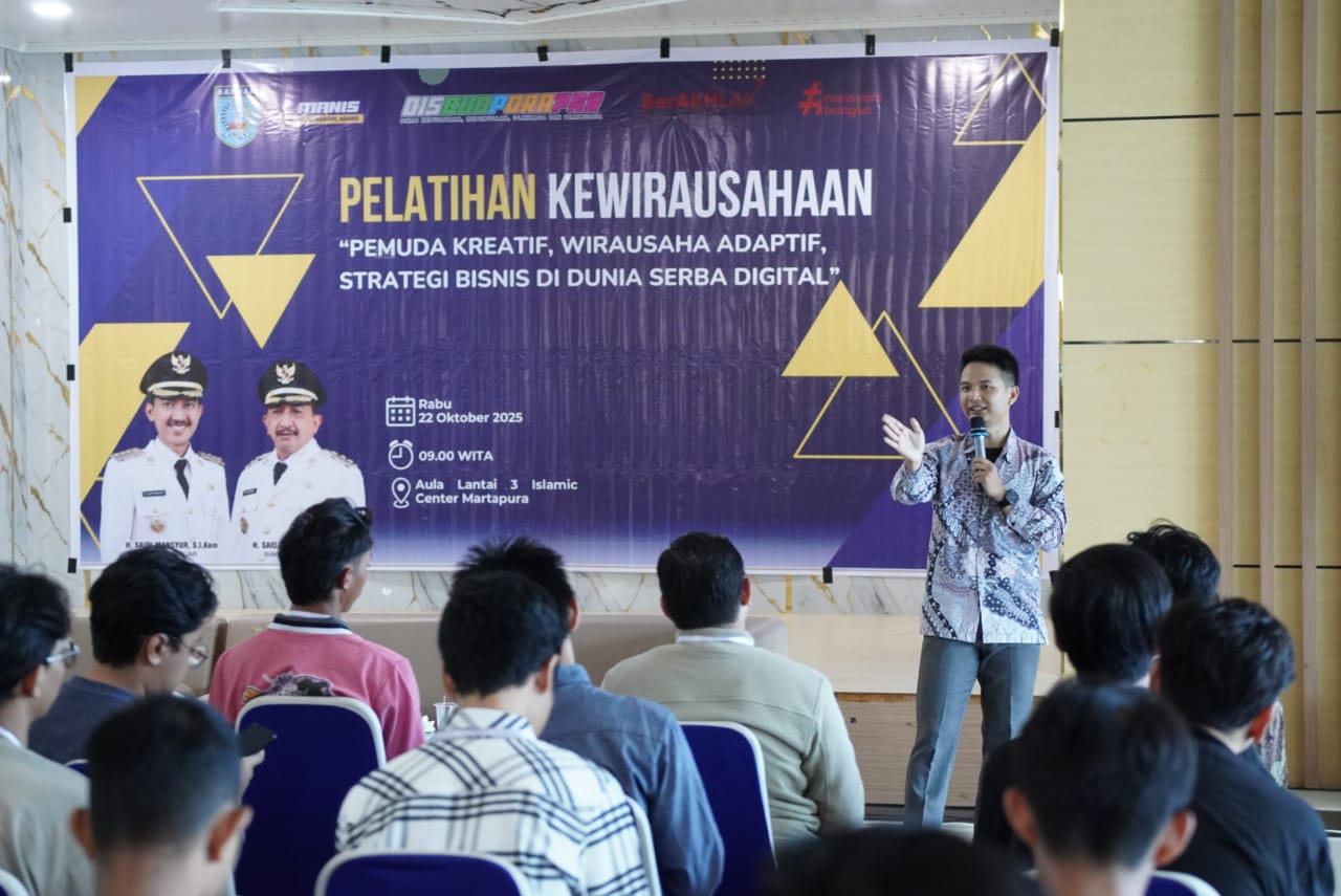 MARTAPURA – Dinas Kebudayaan Kepemudaan Olahraga dan Pariwisata (Disbudporapar) Kabupaten Banjar kembali menggelar Pelatihan Kewirausahaan Pemuda Kreatif dan Adaptif bertema “Strategi Bisnis di Dunia Serba Digital”, di Aula lantai 3 Gedung Islamic Center Martapura, Rabu (22/10/2025).