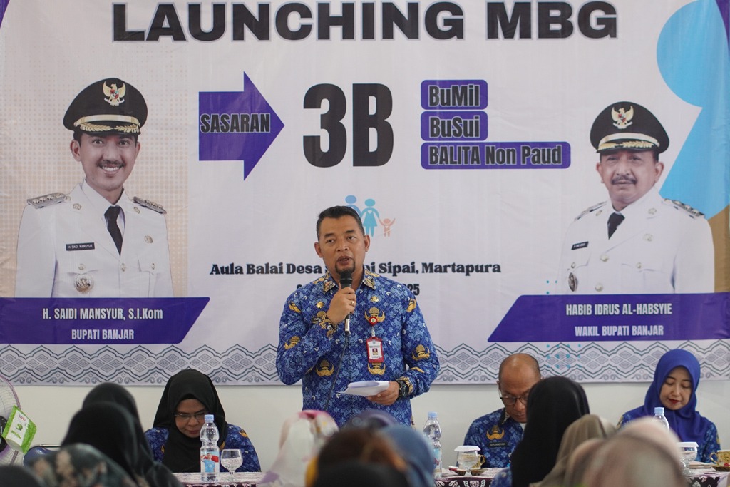 MARTAPURA – Dinas Sosial, Pemberdayaan Perempuan, Perlindungan Anak, Pengendalian Penduduk dan Keluarga Berencana (Dinsos P3AP2KB) Kabupaten Banjar resmi meluncurkan Program Makanan Bergizi Gratis (MBG) di Kantor Pambakal Sungai Sipai, Martapura, Senin (1/12/2025) siang.