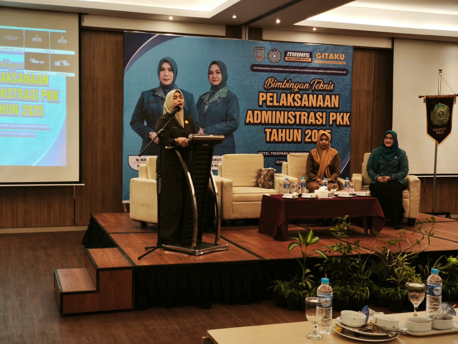 KERTAK HANYAR – Ketua Tim Penggerak Pemberdayaan dan Kesejahteraan Keluarga (TP PKK) Kabupaten Banjar, Hj Nurgita Tiyas, resmi menutup kegiatan Bimbingan Teknis (Bimtek) Administrasi PKK Bidang Kesekretariatan Tahun 2025, di Hotel Tree Park, Kecamatan Kertak Hanyar, Senin (15/9/2025) pagi.