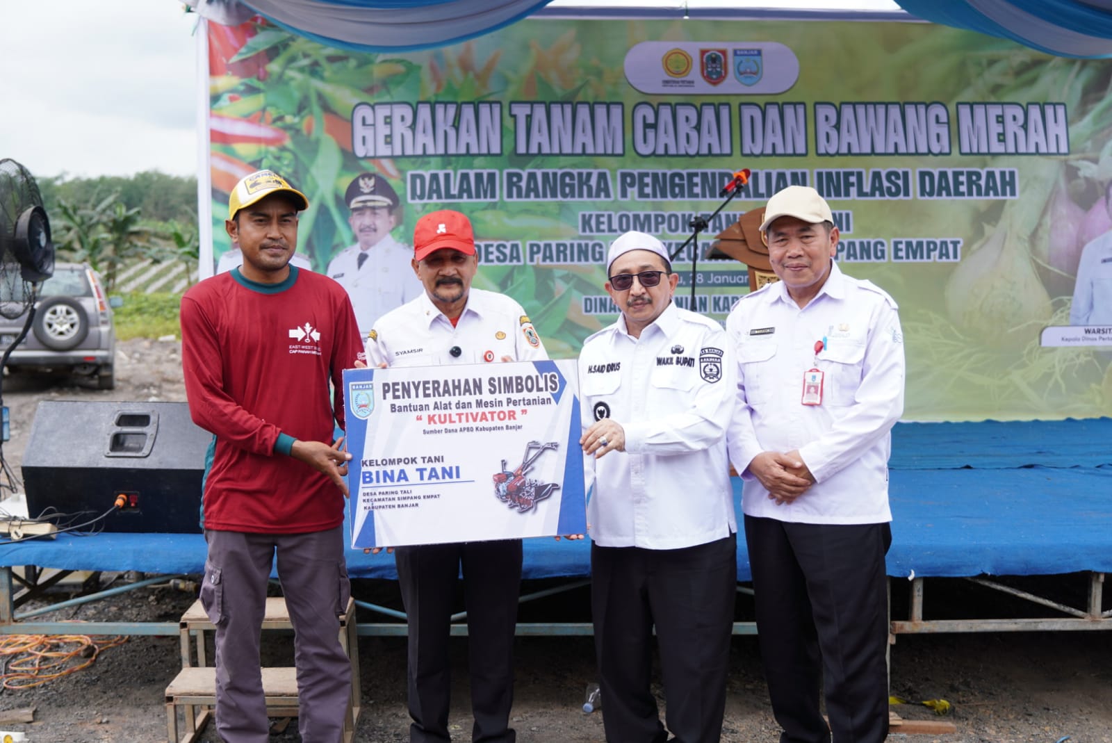 Pada kesempatan yang sama, Kepala Dinas Pertanian Kabupaten Banjar Warsita mengungkapkan bahwa Pemkab Banjar secara simbolis menyerahkan bantuan sarana produksi pertanian kepada puluhan kelompok tani dan Kelompok Wanita Tani (KWT). Bantuan tersebut meliputi benih, sarana produksi pertanian, serta alat dan mesin pertanian (alsintan) seperti traktor dan alsintan roda dua.