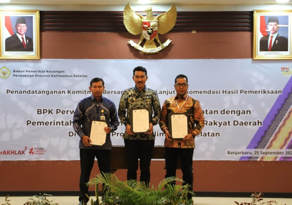 BANJARBARU – Badan Pemeriksa Keuangan (BPK) Perwakilan Provinsi Kalimantan Selatan menggelar penandatanganan komitmen bersama penyelesaian Tindak Lanjut Rekomendasi Hasil Pemeriksaan BPK (TLRHP), di Aula kantornya, Kamis (25/9/2025).