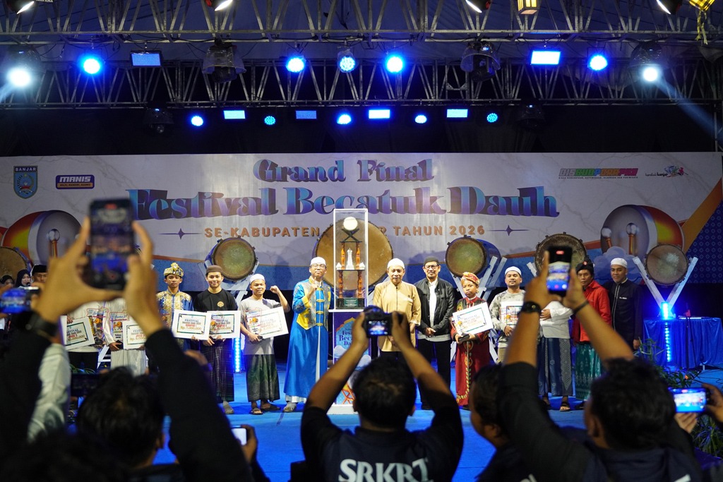 MARTAPURA – Malam Grand Final Festival Becatuk Dauh 2026, sembilan finalis memperebutkan berbagai kategori juara pada kegiatan yang diselenggarakan Dinas Kebudayaan, Kepemudaan, Olahraga dan Pariwisata (Disbudporapar) masih meriah hingga pukul 02.00 Wita, di Alun Alun Ratu Zaleha Martapura, Rabu (4/3/2026).