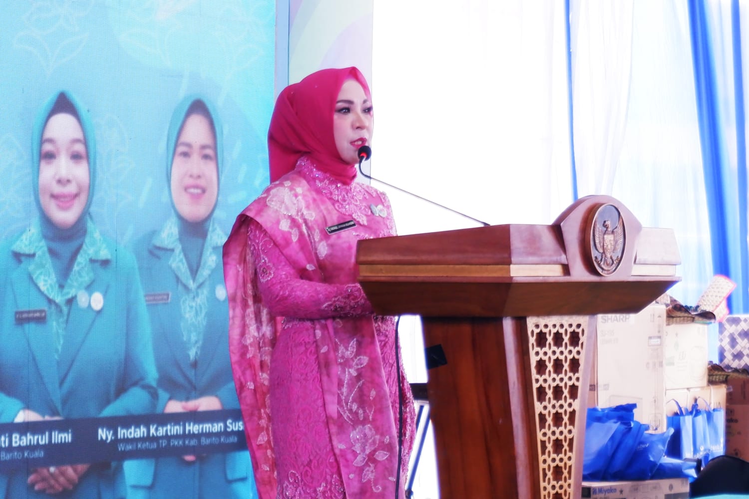 Ketua TP PKK Provinsi Kalsel, Hj Fathul Jannah menyampaikan rasa syukur atas terselenggaranya kegiatan yang berjalan lancar dan dihadiri seluruh ketua TP PKK kabupaten/kota.