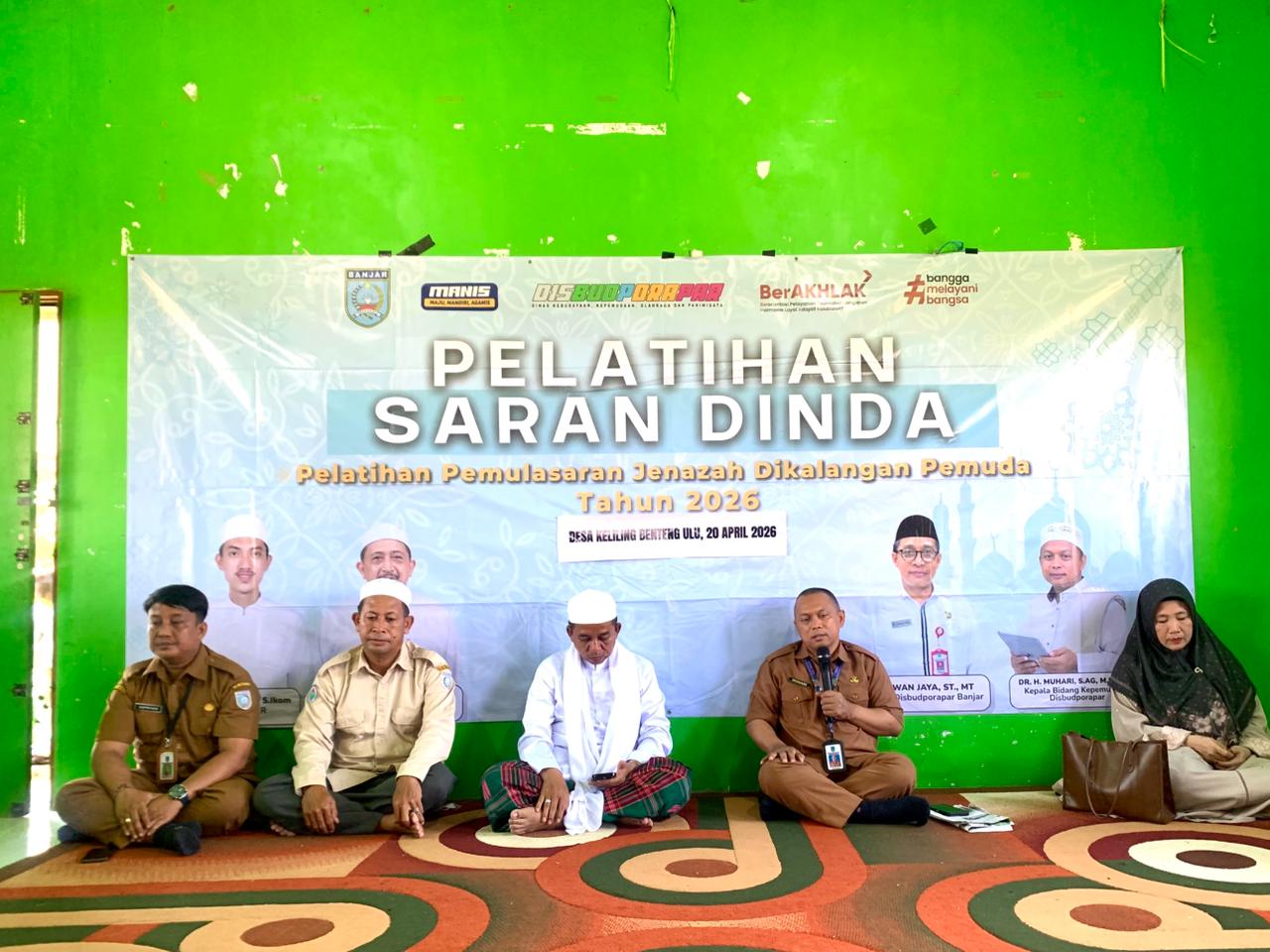 MARTAPURA BARAT – Dinas Kebudayaan, Kepemudaan, Olahraga dan Pariwisata (Disbudporapar) Kabupaten Banjar menggelar pelatihan pemulasaran jenazah bagi kalangan pemuda melalui program Saran Dinda di Desa Keliling Benteng Ulu, Kecamatan Martapura Barat, Senin (20/4/2026).