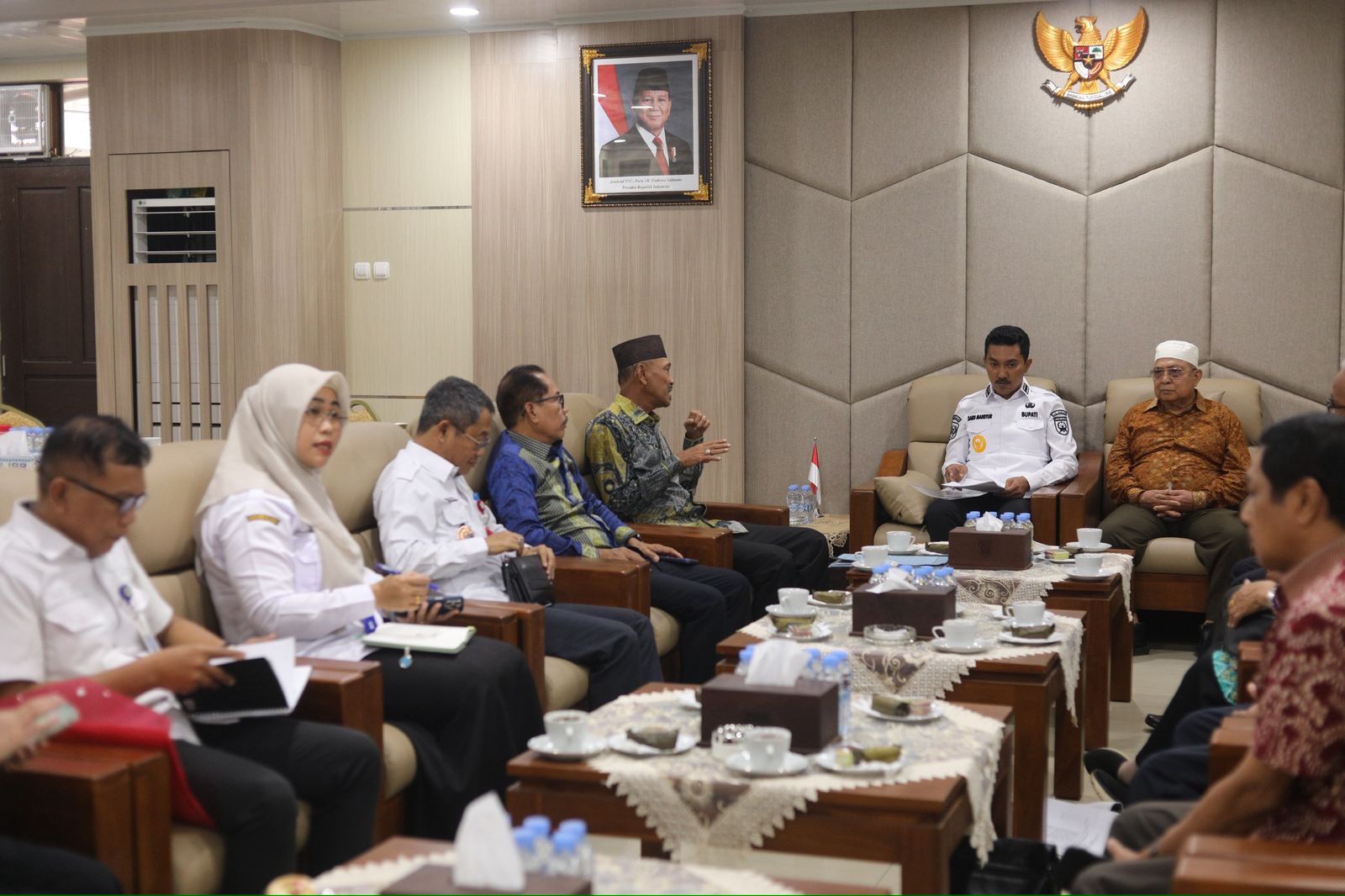MARTAPURA – Dipimpin Ketua Gt Syahrin, pengurus Persatuan Wredatama Republik Indonesia (PWRI) Kabupaten Banjar menggelar audiensi dengan Bupati Banjar H Saidi Mansyur di Mahligai Sultan Adam, Martapura, Rabu (19/11/2025) pagi.