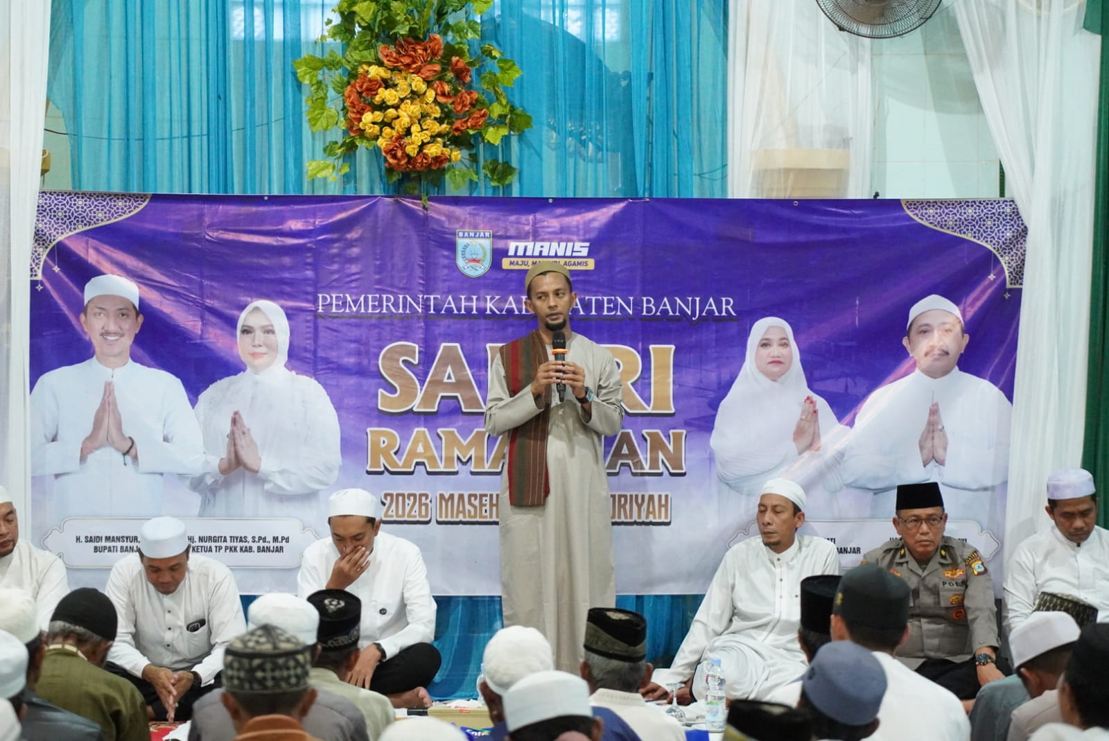 Safari Ramadan ini juga dihadiri Sekda Banjar H Yudi Andrea, Ketua TP PKK Banjar Hj Nurgita Tiyas, para asisten dan staf ahli, direktur perusda, kepala SKPD, jajaran Kecamatan Mataraman, unsur Pemerintah Desa Gunung Jati serta warga setempat.
