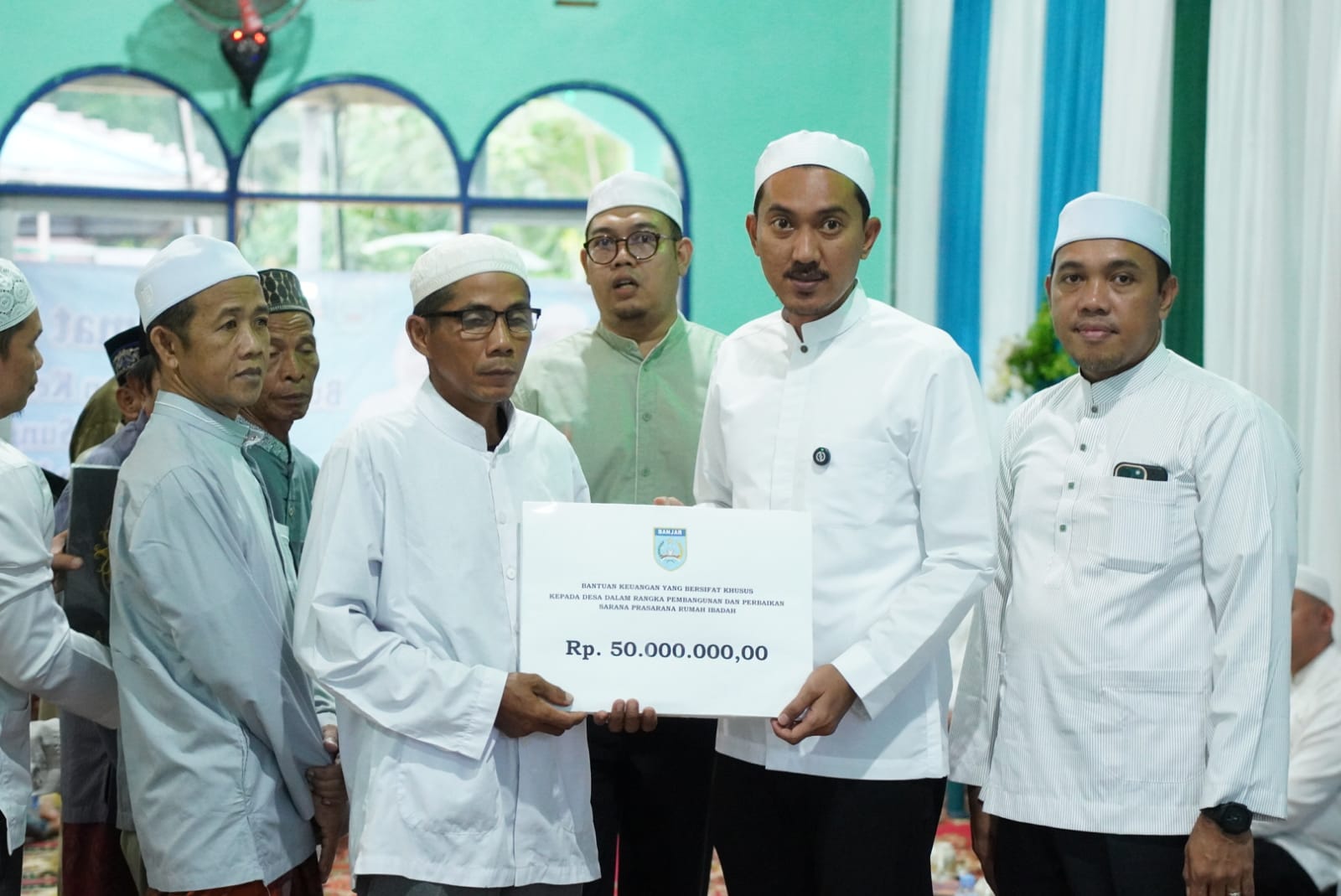 Pada kesempatan ini Bupati Saidi Mansyur juga menyerahkan bantuan sarana dan prasarana rumah ibadah kepada Masjid Nurul Iman Desa Sungai Jati Rp 50 juta, bantuan Al quran terjemahan Bahasa Banjar dan pakat sembako kepada warga lansia. Kemudian penyerahan bantuan dari Ketua TP PKK Kabupaten Banjar Hj Nurgita Tiyas kepada penerima manfaat.