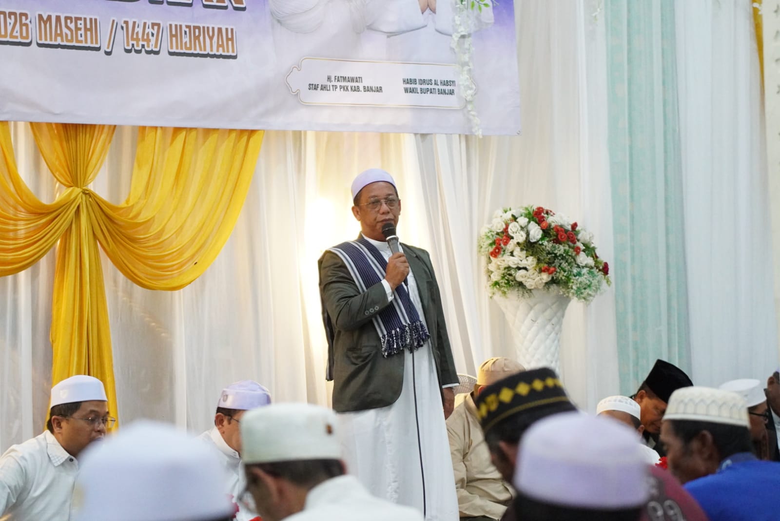 Selaku Penceramah Guru Muhammad Fauzan asal Sekumpul Martapura dalam tausiyahnya mengajak jemaah untuk melaksanakan salat berjemaah karena pahalanya sangat besar seperti pahala berhaji.