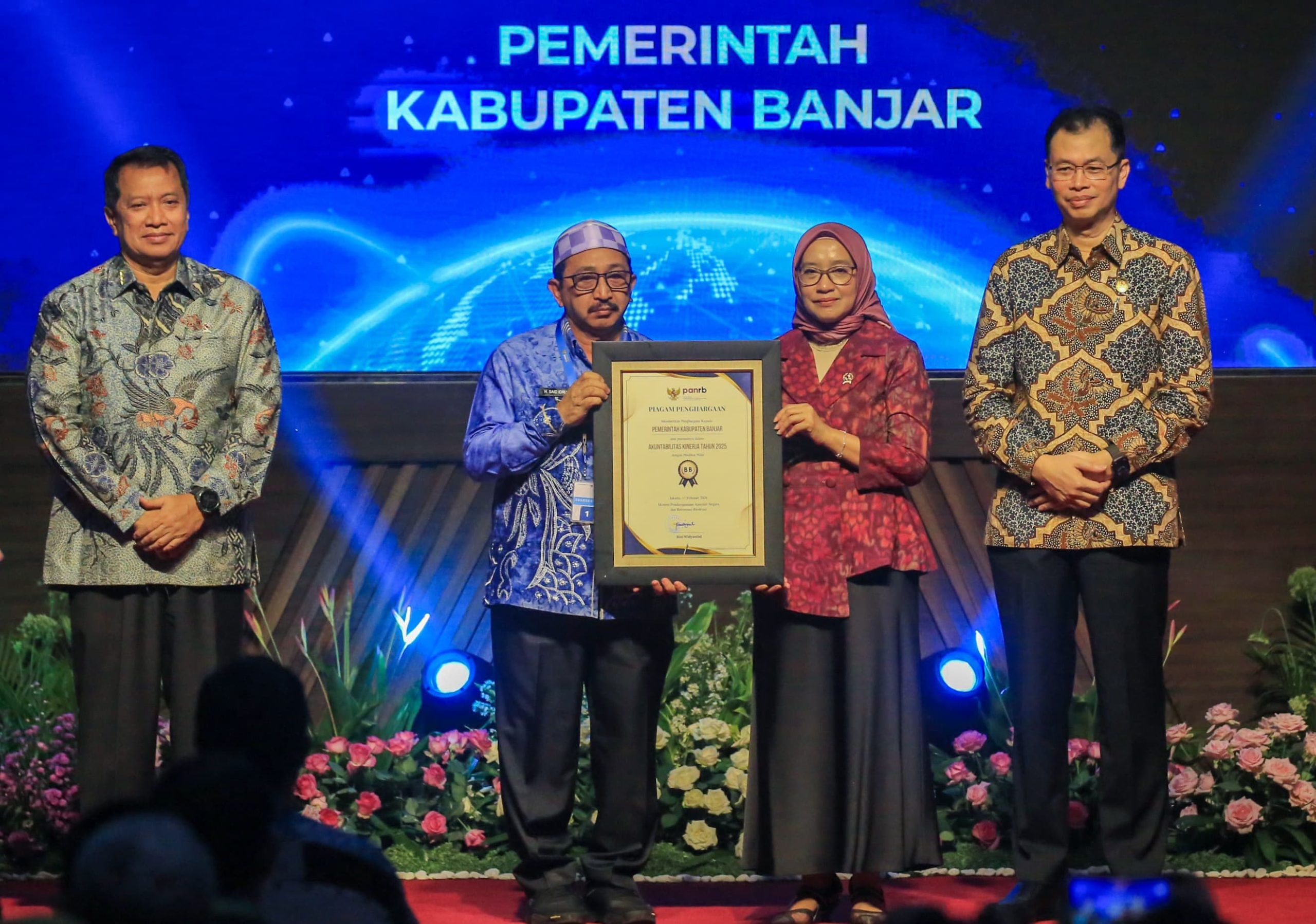 Penghargaan Sistem Akuntabilitas Kinerja Instansi Pemerintah (SAKIP) dan Zona Integritas (ZI) Award 2025 bertemakan “Transformasi Akuntabilitas dan Integritas Menuju Indonesia Emas 2045″ oleh Kementerian Pendayagunaan Aparatur Negara dan Reformasi Birokrasi (PANRB), didapatkan Kabupaten Banjar bersama enam Provinsi, Kabupaten/Kota se-Indonesia.