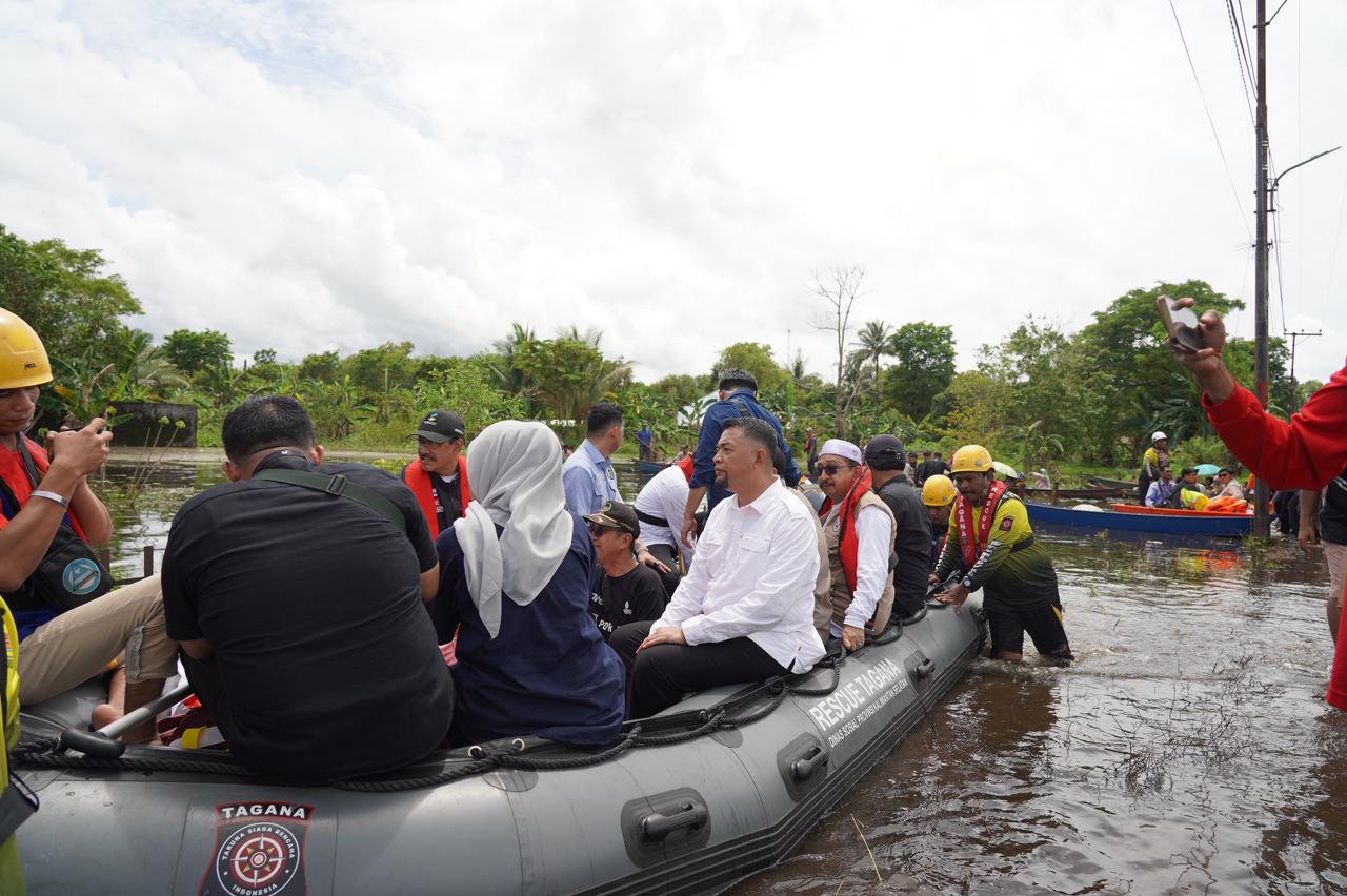 Dalam peninjauan itu, Menteri Sosial menyusuri lokasi banjir dengan perahu dan dikawal para relawan dan aparat keamanan. Banjir yang menggenangi rumah warga tersebut dengan ketinggian bervariasi dari lutut hingga paha orang dewasa.