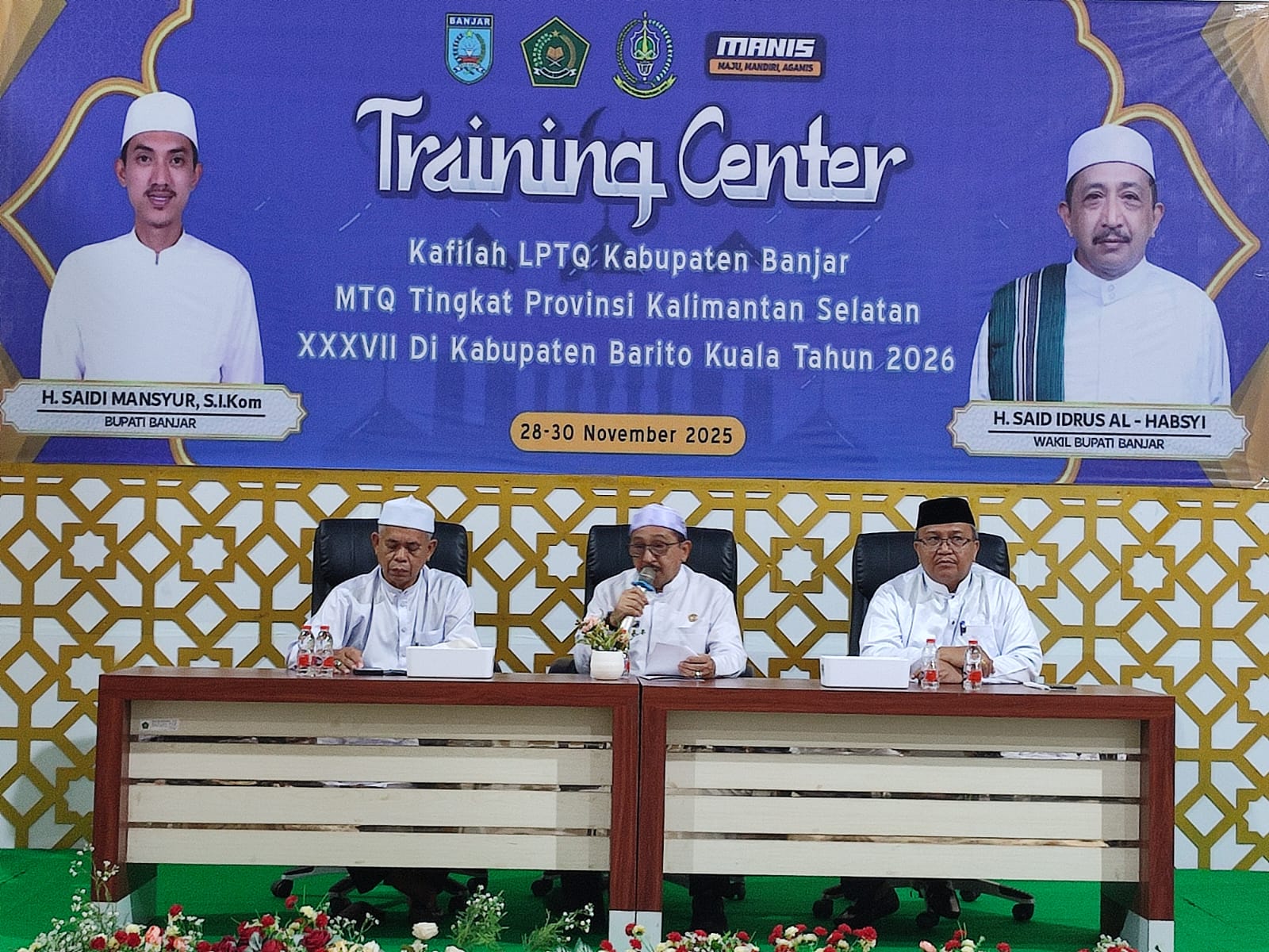 Hal tersebut ditegaskan Wakil Bupati Banjar, Habib Idrus Al Habsyi, saat membuka Training Center Kafilah Lembaga Pengembangan Tilawatil Quran (LPTQ) Kabupaten Banjar, di Aula Jabal Rahmah, Asrama Embarkasi Haji Banjarmasin, Banjarbaru, Jumat (28/11/2025) pagi.