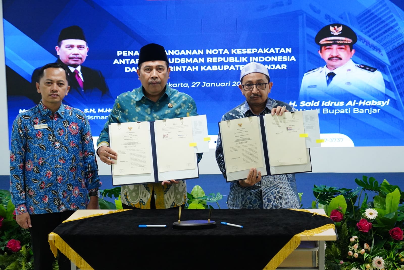 JAKARTA – Pemerintah Kabupaten Banjar terus menunjukkan komitmen nyata dalam mereformasi birokrasi dan meningkatkan kualitas pelayanan kepada masyarakat. Hal ini ditegaskan dengan kehadiran langsung Wakil Bupati Banjar, Habib Idrus Al Habsyi, dalam acara penandatanganan Nota Kesepakatan (MoU) antara Ombudsman Republik Indonesia dengan pemerintah daerah se-Provinsi Kalimantan Selatan, di Gedung Ombudsman RI, Jakarta, Selasa (27/1) pagi.
